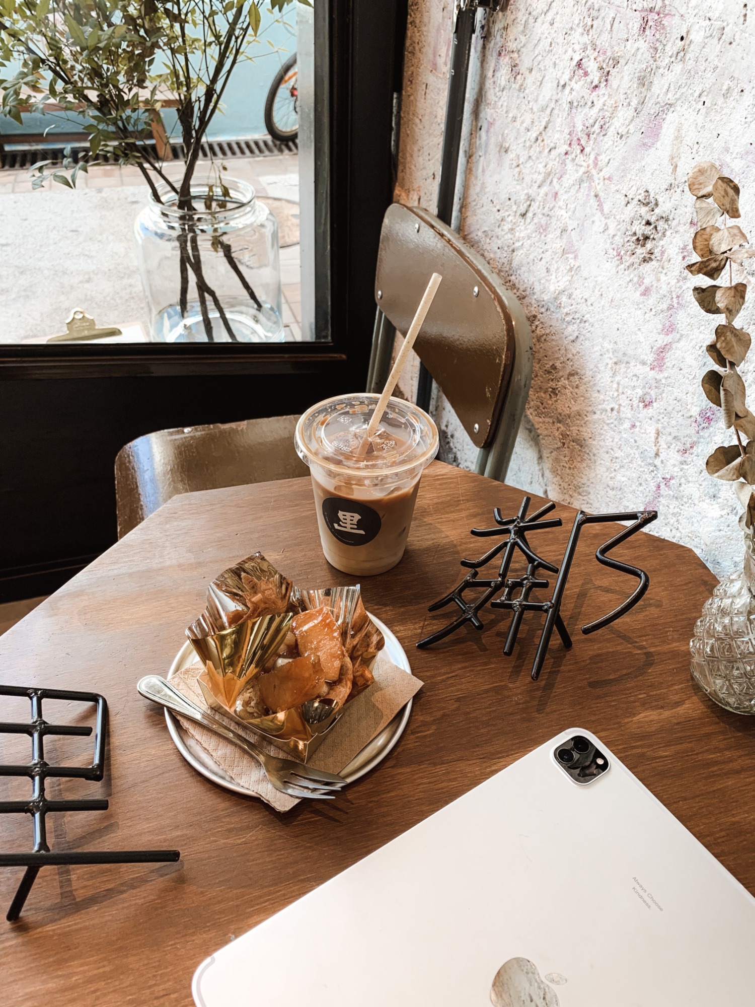 z musem jabłkowym, bitą śmietaną i polewą czekoladowo orzechową -